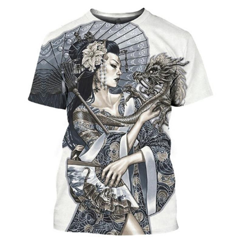 New Japanese Geisha 3D Print T-shirts Summer Men Woman Short Sleeve Tees Fashion Streetwear Harajuku