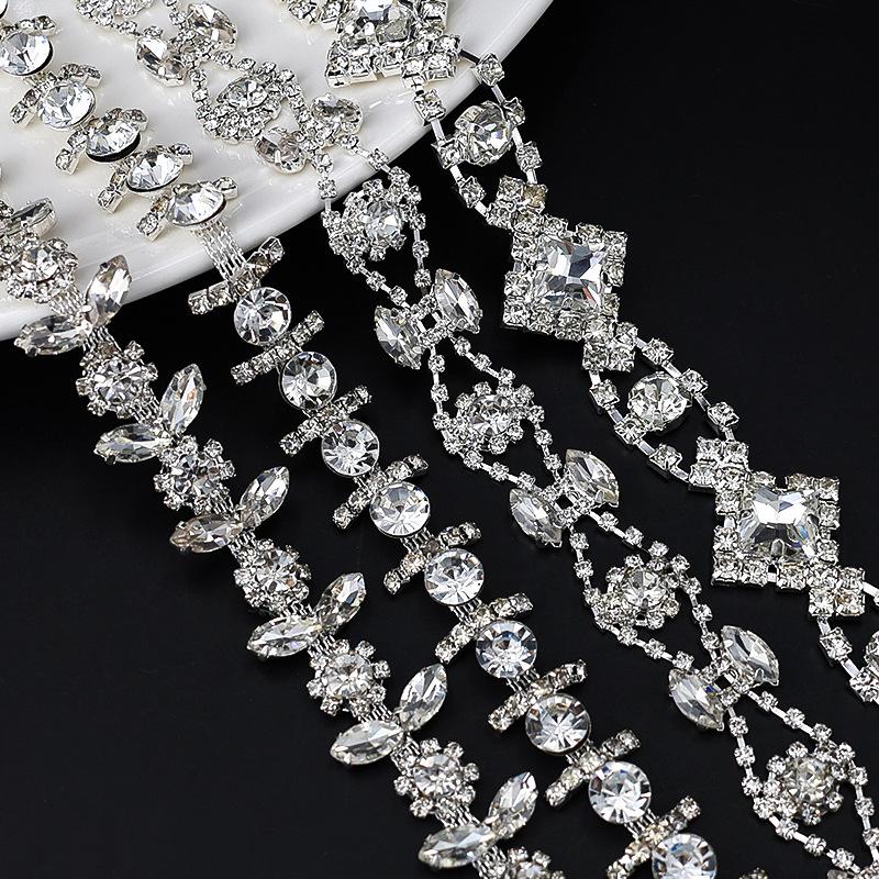 10Yards Rhinestone Sparkle Crystal Diamond Flower Leaf Rhinestone Chain Clothing Bags DIY Arts Wedding Party Gift Decoration
