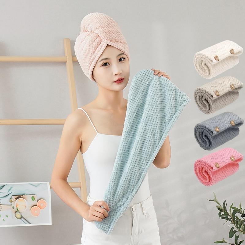 4/2Pcs Hair Drying Towel With Button Women'S Quick-Dry Microfiber Headscarves Absorbent Hair Towel Wrap Thickened Soft Headscarf
