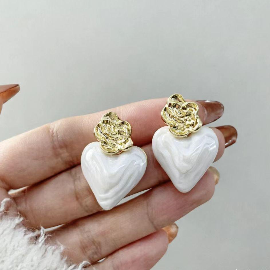 French white love stud earrings temperament celebrity style heart earrings personality exaggerated earrings