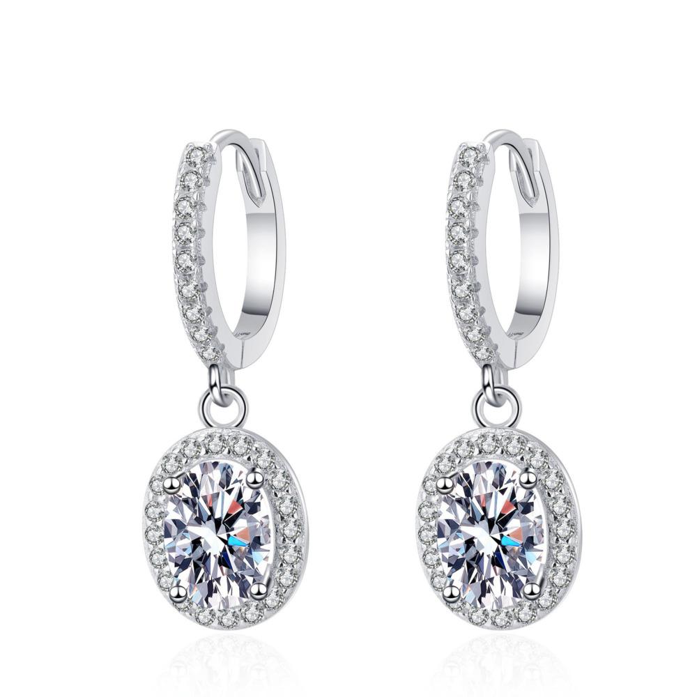 1CT S925 Sterling Silver Earrings For Women Oval Cut Moissanite Ear Buckles D VVS1 Exquisite Jewelry
