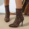 Sexy Sock Boot Female Stretch Slim Ankle Boots For Women High Heels Fashion Leopard Silver Party Shoes Spring Autumn Big Size 48