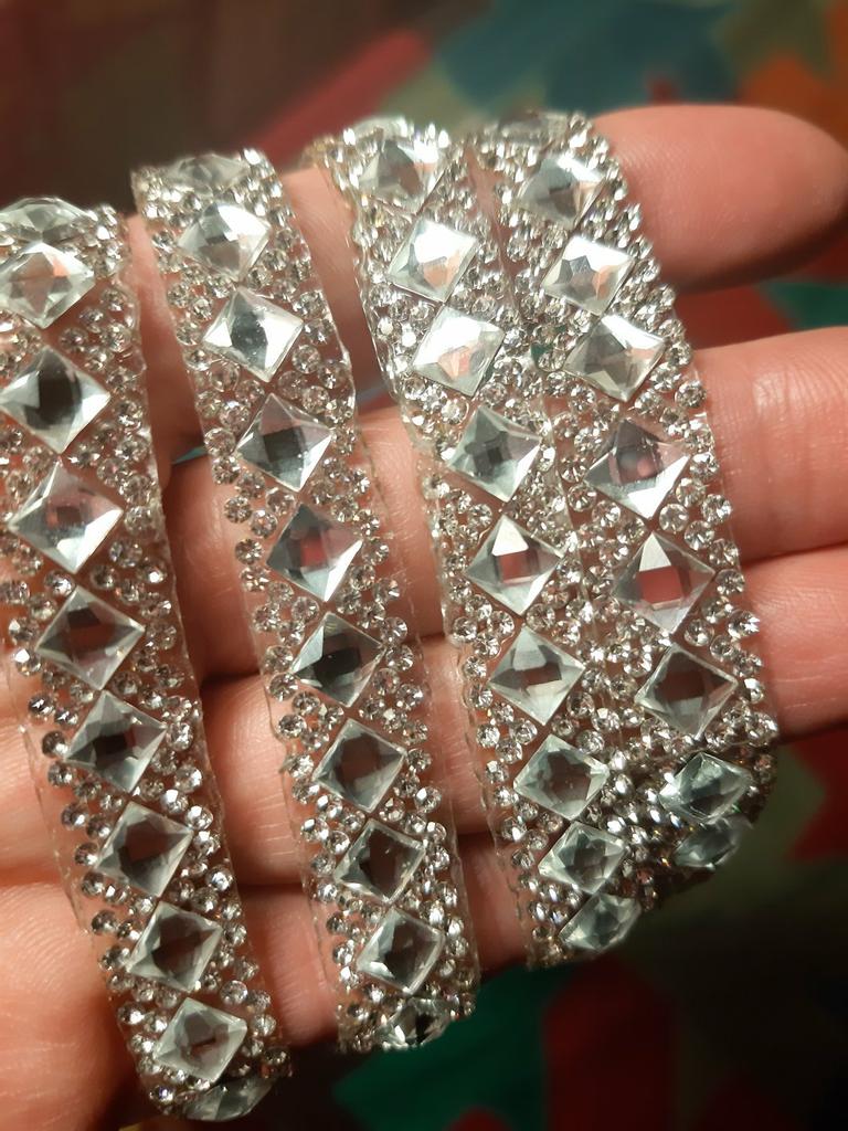 1 Yard Silver Rhinestone Ribbon Crystal Sewing Trim DIY Crafts 6 Rows 12mm