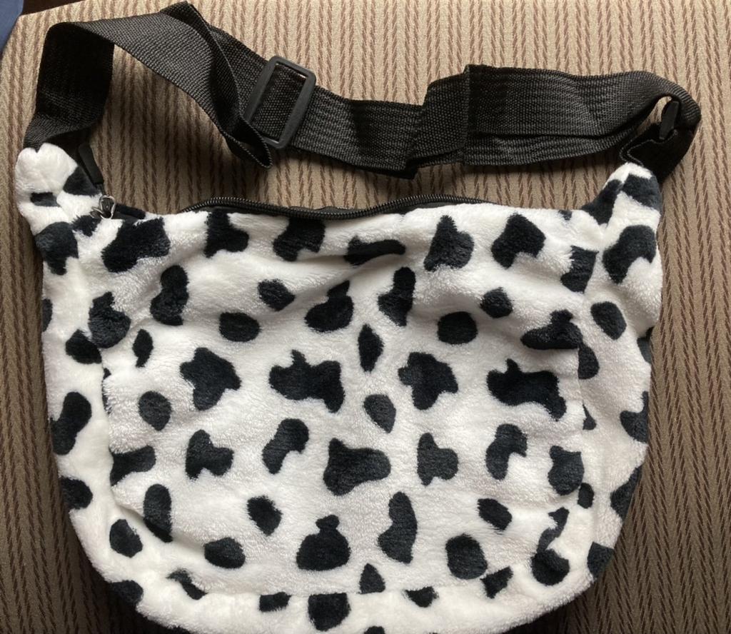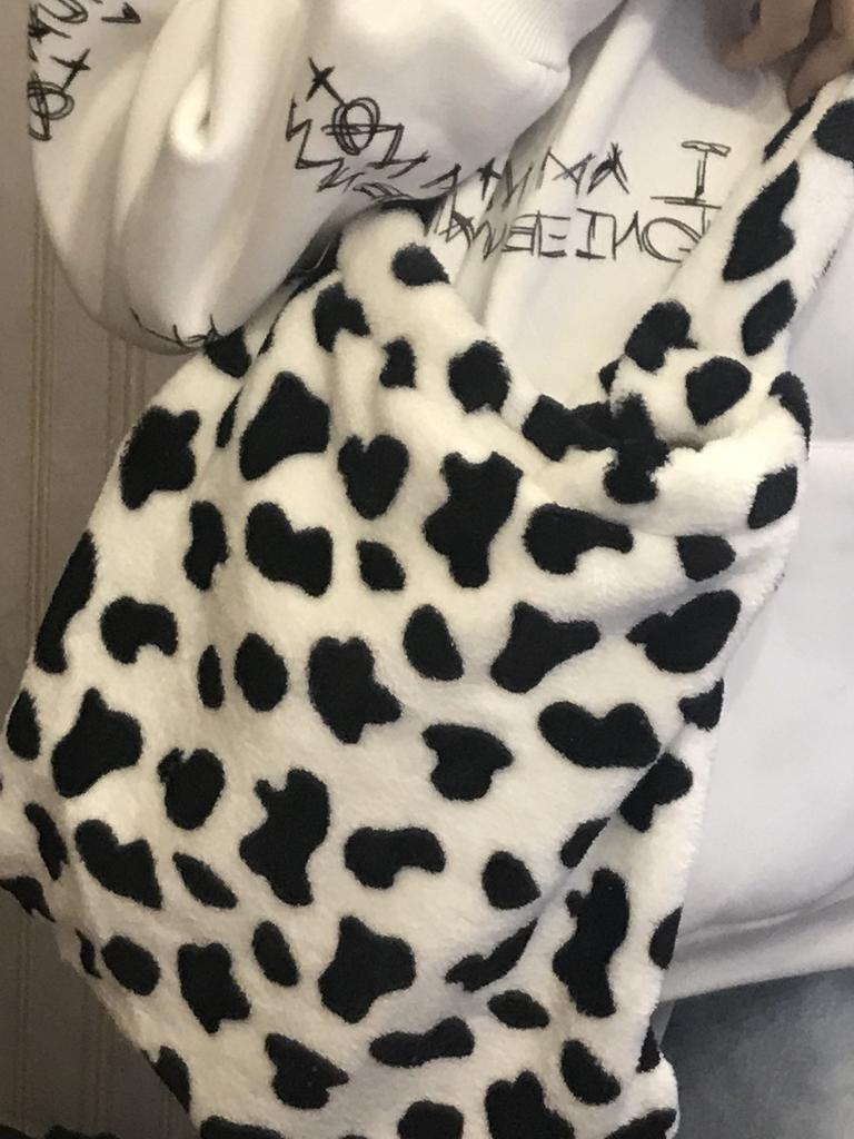 Yogodlns Milk Cow Print Messenger Bag Womens High Capacity Single Shoulder Bag Soft Plush Tote Bags