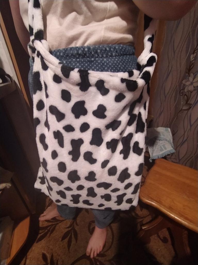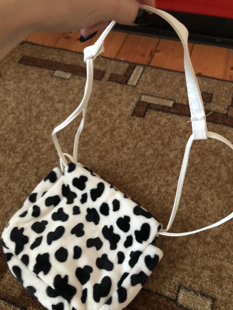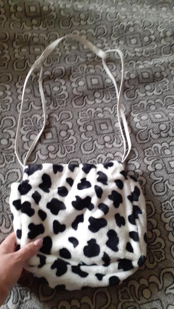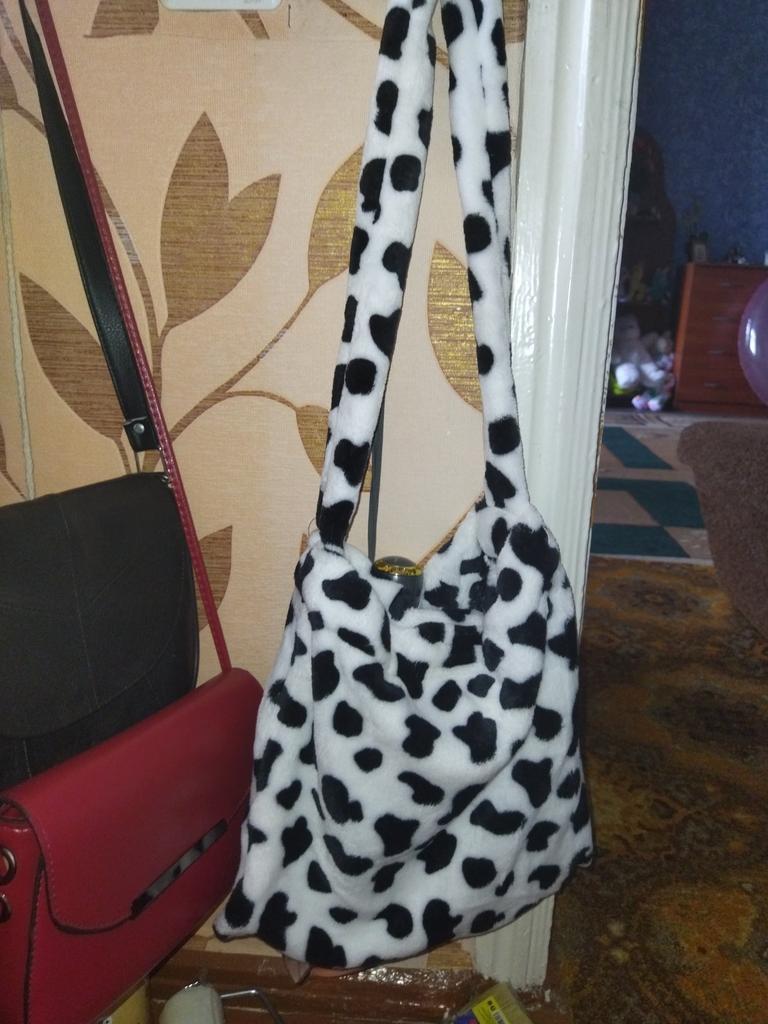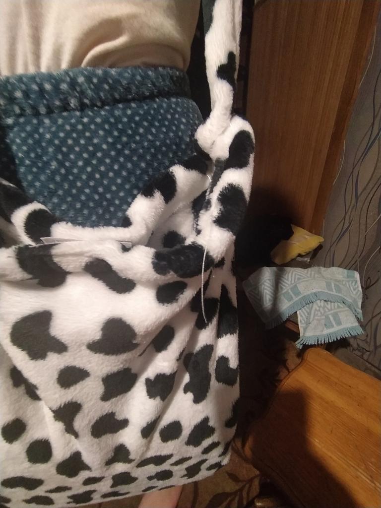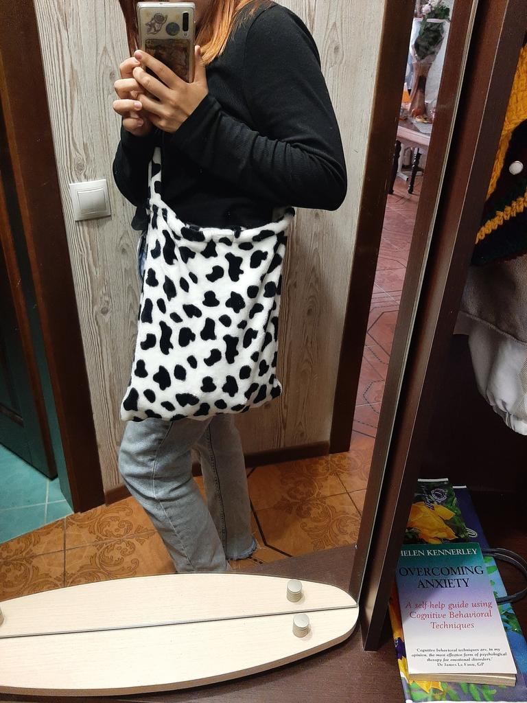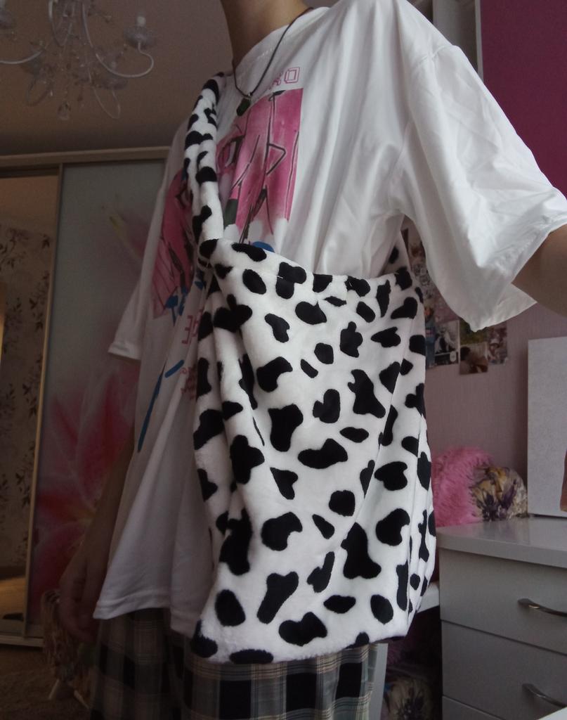 Disappointment... 🐄 The crooked handbag does not correspond to the stated dimensions. 🐮It's a shame, because the fabric is pleasant to the touch and the print is so cool 🐄 They put a blue hair band in my handbag as a gift, thank you...