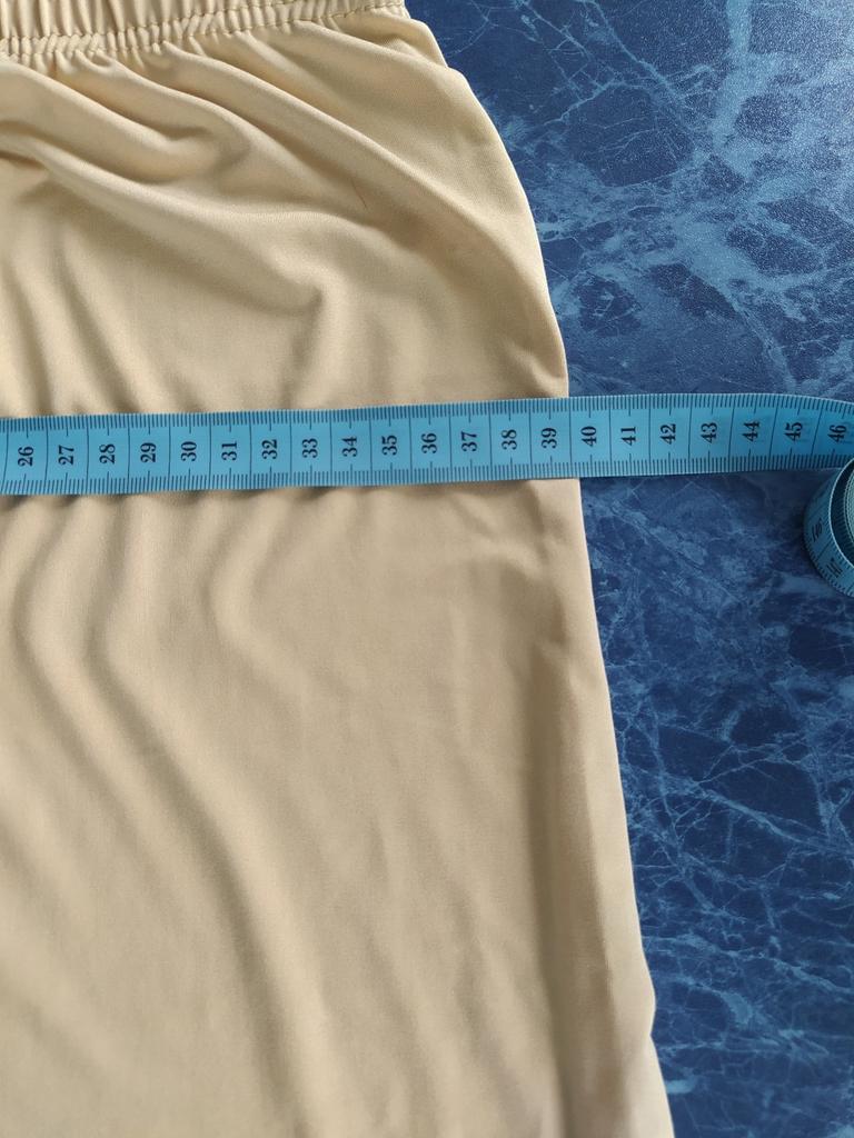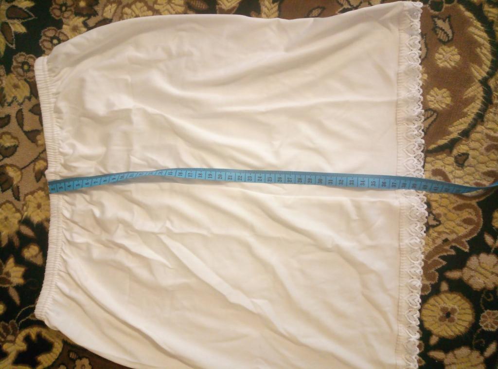 Very short (barely covers the ass)! Too narrow, somewhere in the size 42-44. Terrible!!! I ask you to return the money! I still can't wear this petticoat!