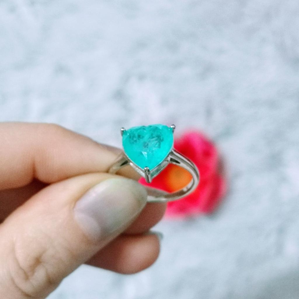 ⭐⭐⭐⭐⭐ silver colored ring with 💙shaped jewel - Bella Box Delivery time: 12 days Packaging: cardboard box / air cushion envelope Arrived intact: yes Item matches description: yes Items matches product pictures: yes Material : zirconia / metal (copper) Color: light turquoise / silver Other colors available: yes Size: 6 Other sizes available: yes Quality: perfect Additional comment: it is beautiful. I love the cracks in the stone. Recommendation: yes My exact ring sizes US (from thumb to pinkie) : 6,5 / 6,5 / 6 / 5 / 2,5