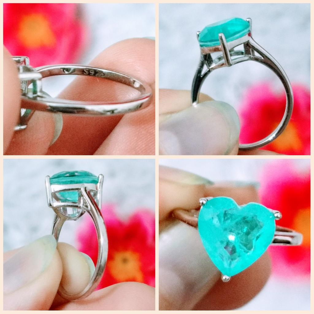 Gica Gema Classic 100% 925 Sterling Silver Heart Shape Finger Rings Elegant Paraiba Tourmaline Engagement Wedding Statement Gift