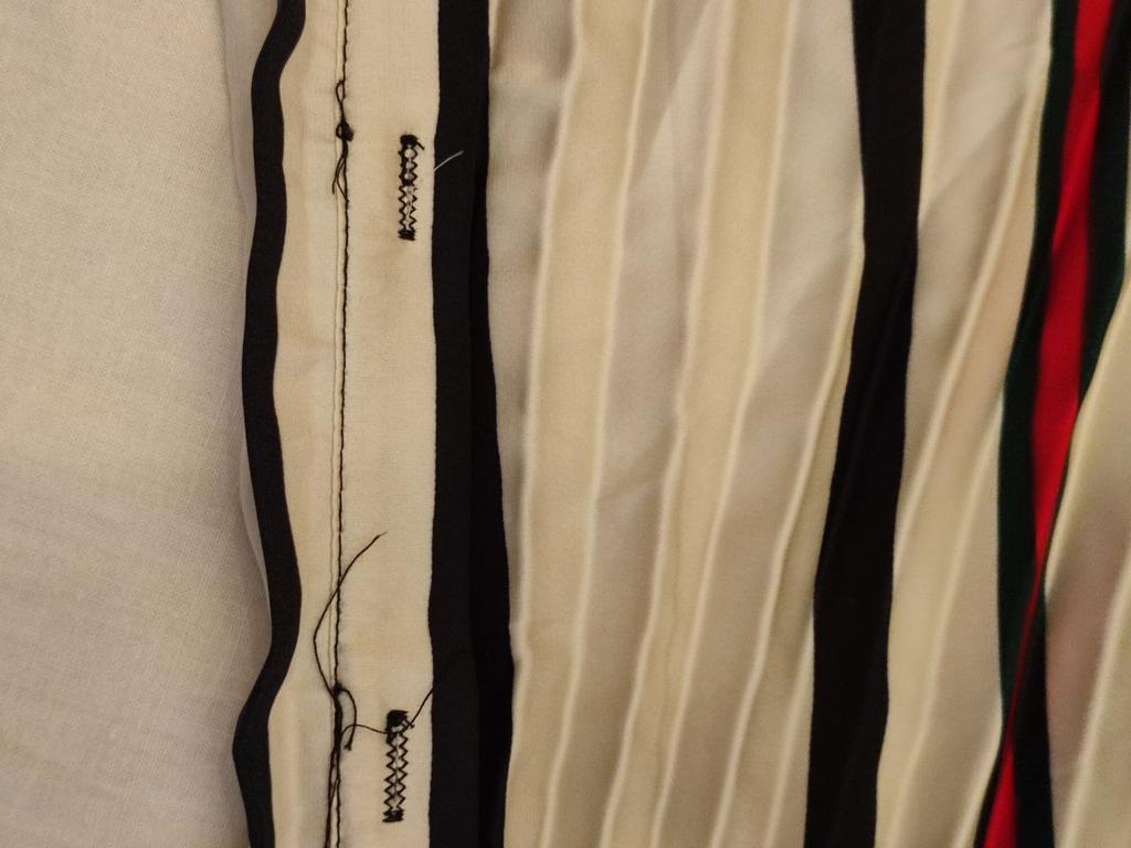 The pattern on the fabric is damaged, faded and faded in places.