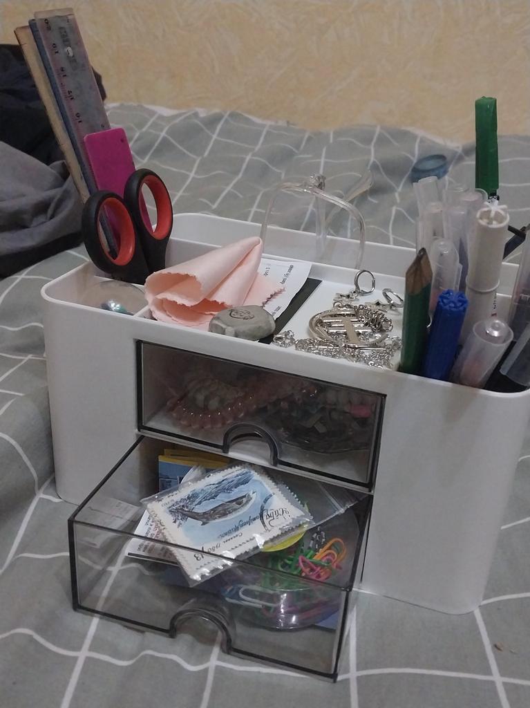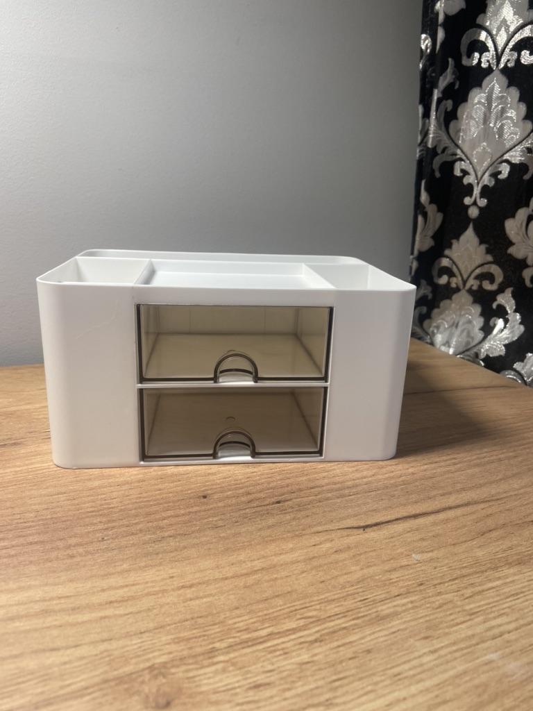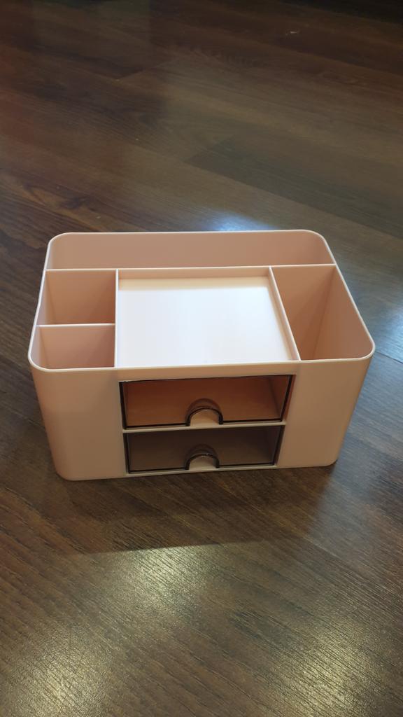 very cool organizer. ordered for cosmetics. I really liked the transparent drawers. very accommodating. the only minus is that the bottom drawer does not close well.
