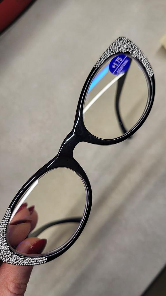 A lot of rhinestones! Glamorous! Not my style, but mine +1.75. Thank you!🤩