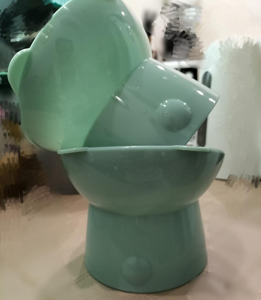Pure Color Fishbone Pattern Protect Cervical Spine Smooth Cats Dogs Water Feeder Dish Plate Pet Accessories Bowl