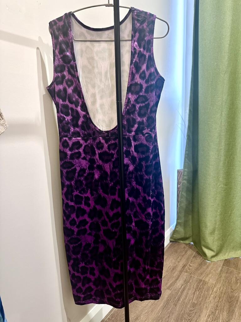 Fashion Leopard Print Midi Dress Women Streetwear Backless Sexy Sleeveless Summer Dresses Party Bodycon Vintage Clothing 26174
