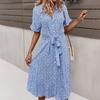 Women Floral Print Long Dress Vintage Bandage Single-Breasted V-Neck Beach Dresses Ladies Boho Short Sleeve Button Robe Vestidos