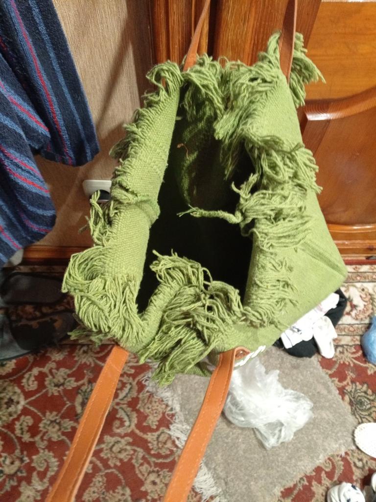 The bag is super big and green, it’s a pity there is no lining! Well, it stinks a little.