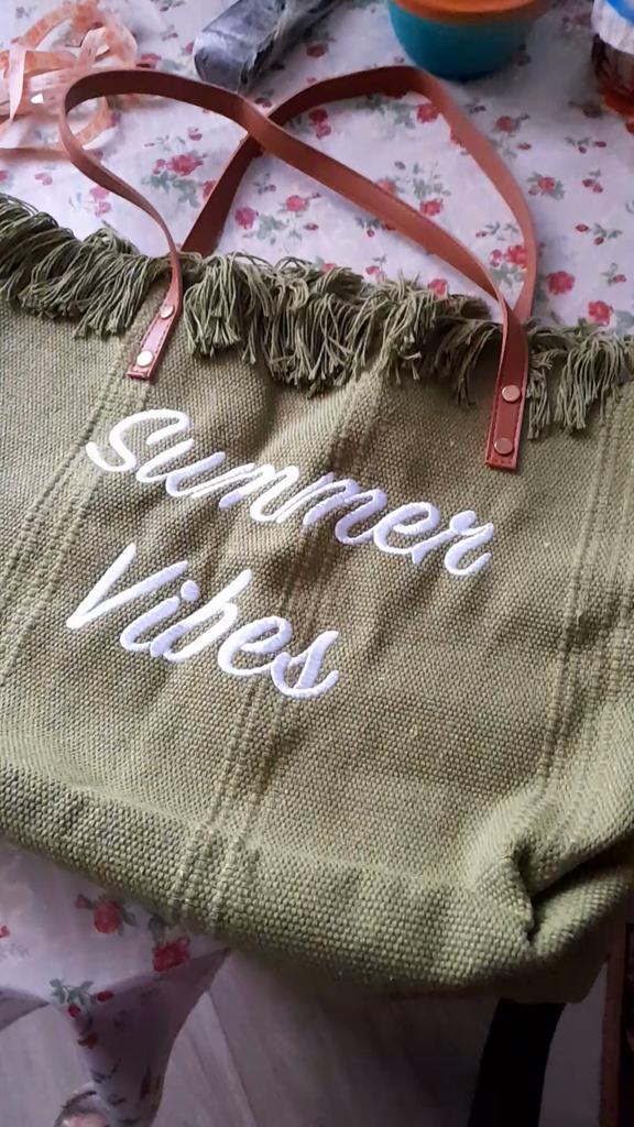 Women Letters Embroidery Canvas Bag One Shoulder Underarm Messenger Bag Large Tote Beach Bag Shopping Bag Women Canvas Handbag