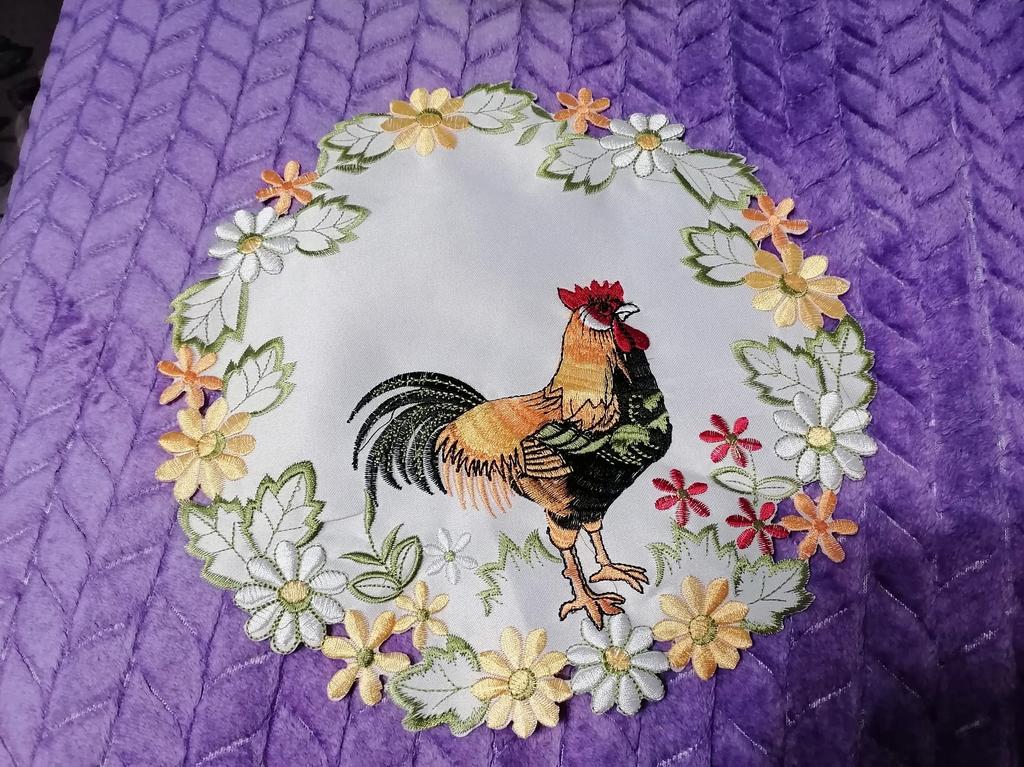 A wonderful napkin, the rooster is embroidered.