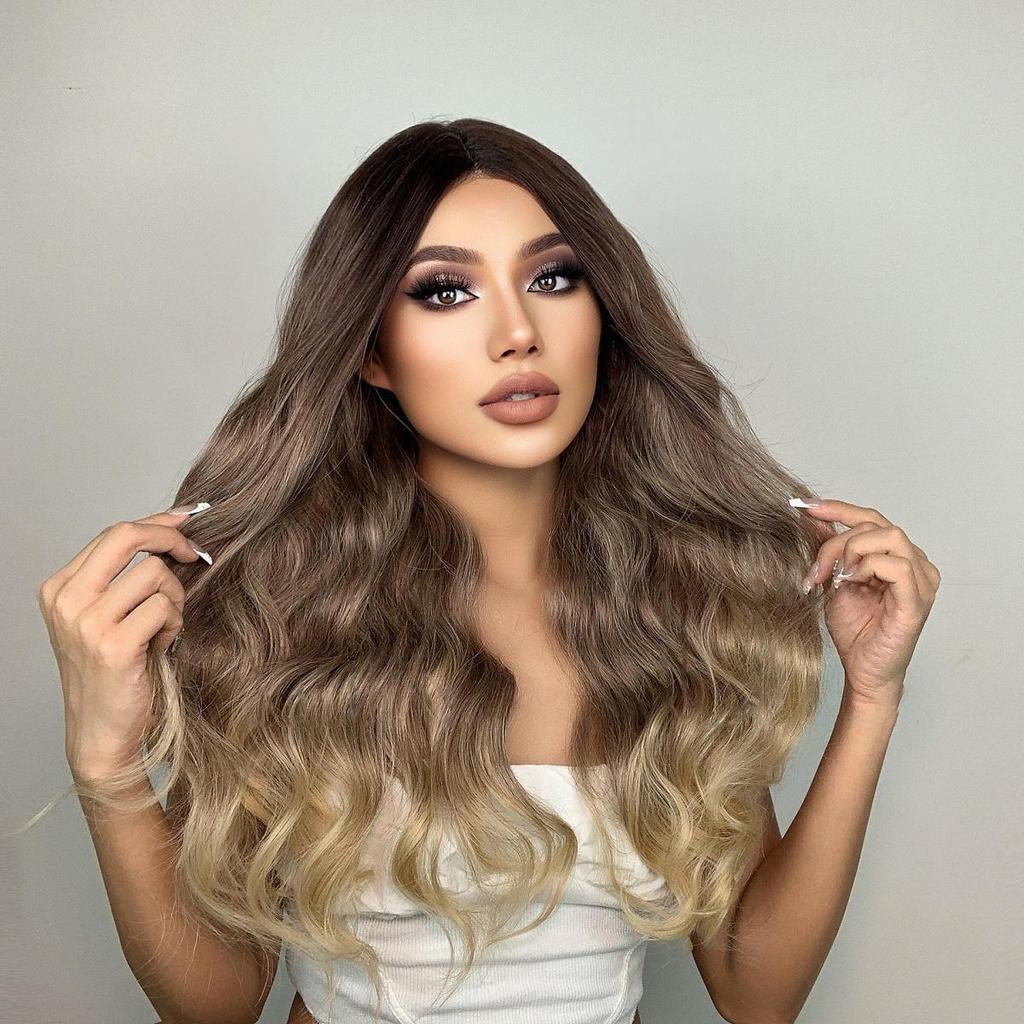 Women's 62cm Hair Light Brown Long Curly Hair T-shaped Front Lace Rose Hair Net Headwear Pure Hand Woven Lace Wigs Kanekalon Wig