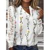 Spring and Autumn Women's Blouse Fashion Temperament Petal Lace Sleeve Button Down Collar Flower Print Long Sleeve Top