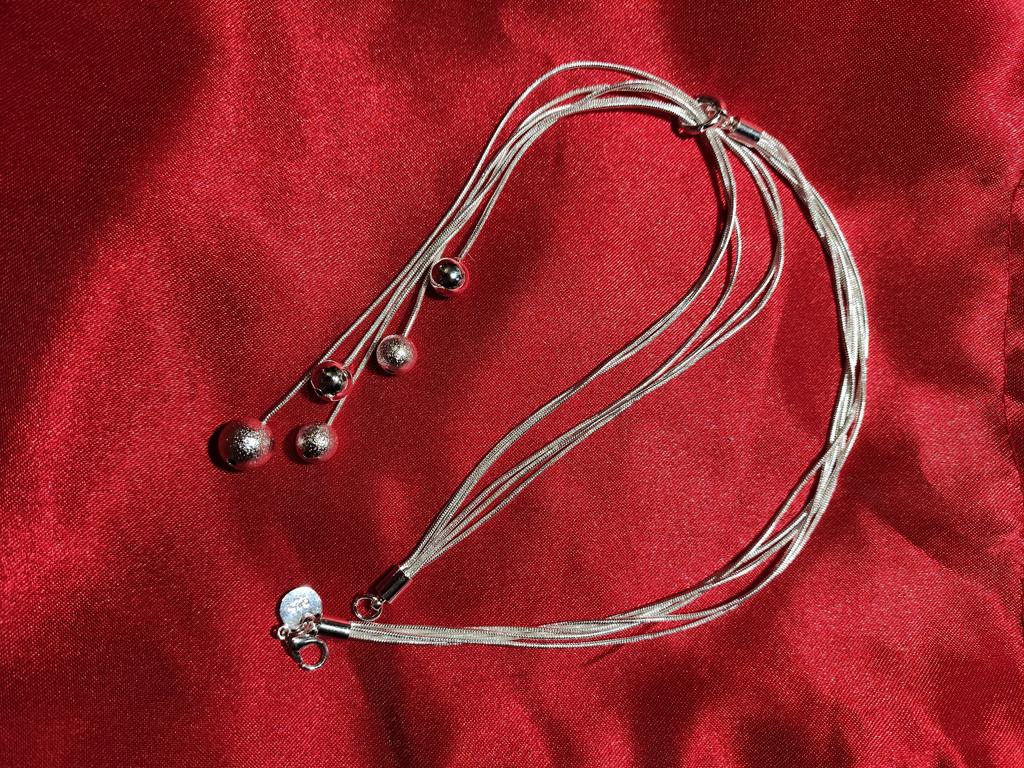 The necklace is very beautiful, high quality...white silver...looks very stylish, elite...I recommend it..