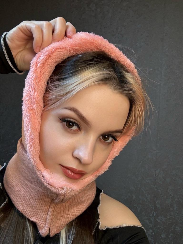 Women Autumn Winter Cold Resistant Plush Thickened Neck One Piece Warm Ear Protection Cover Knitted Hat