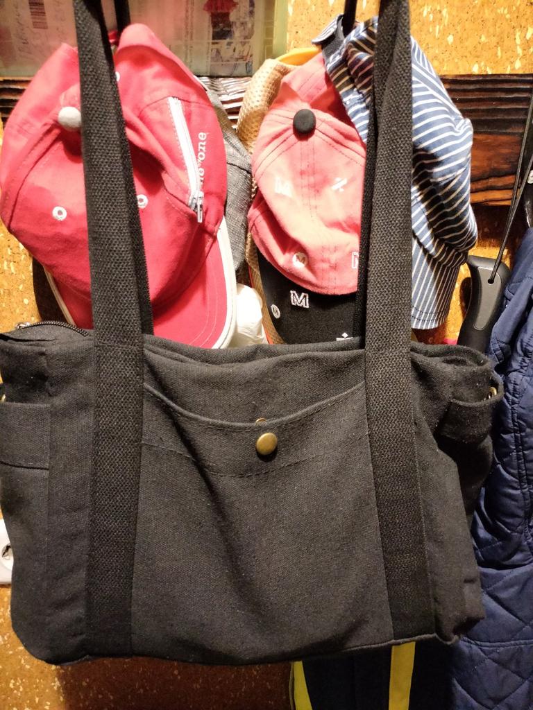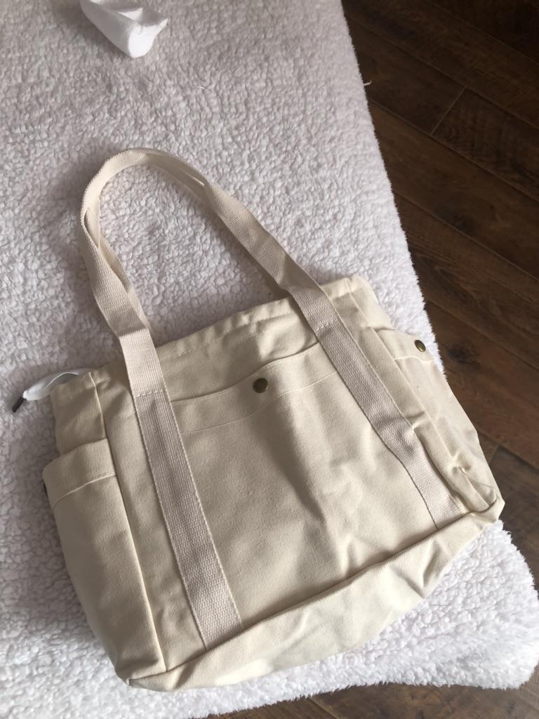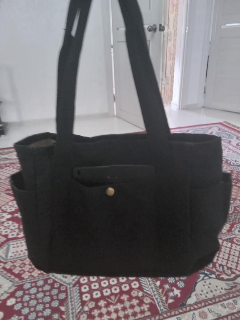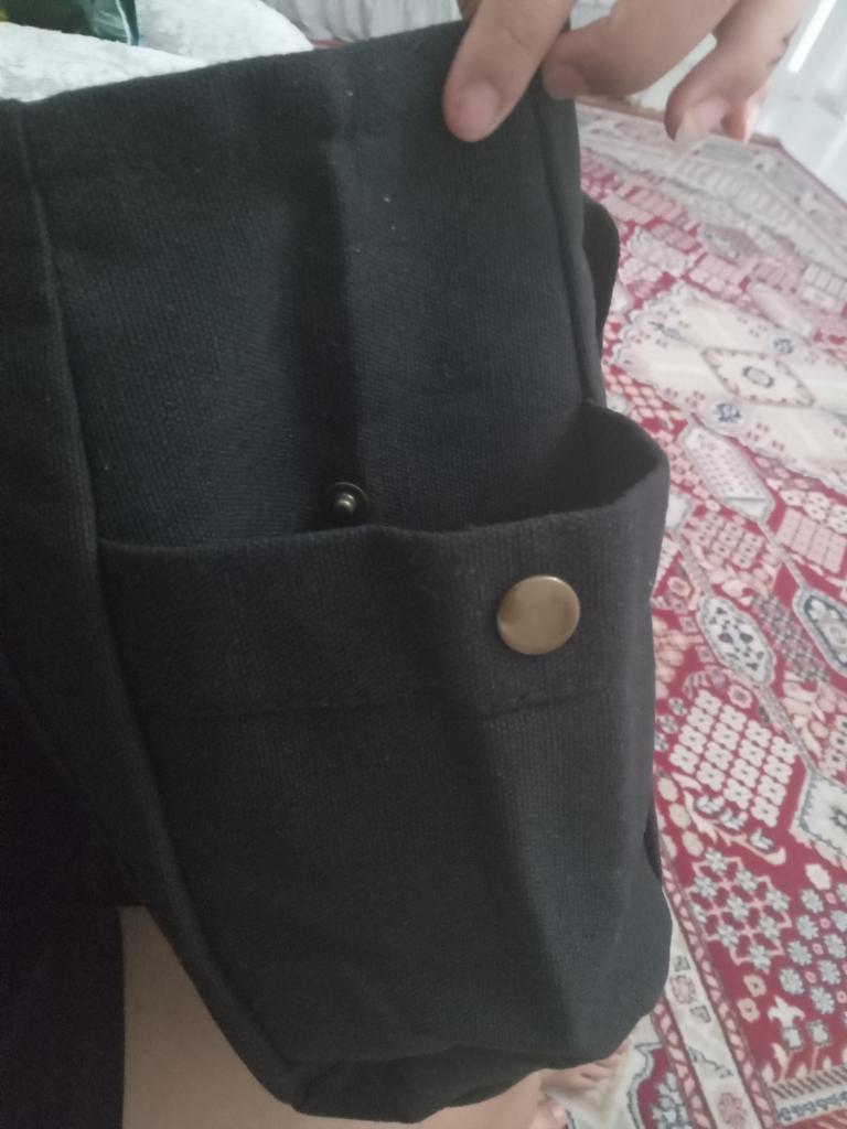 Very comfortable bag. Big, holds a lot of things. Nice quality, several pockets for trinkets with buttons. Inside is a lining and one pocket. Fastens with a zipper
