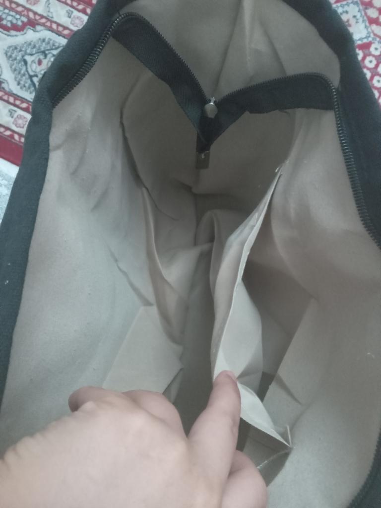 The bag is very good, fastens with a zipper, pockets, lined, the material is thick