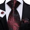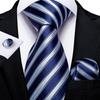 Dibangu Red Blue Gold Gray Mens Silk Stripped Woven Tie Necktie Hanky Cufflinks