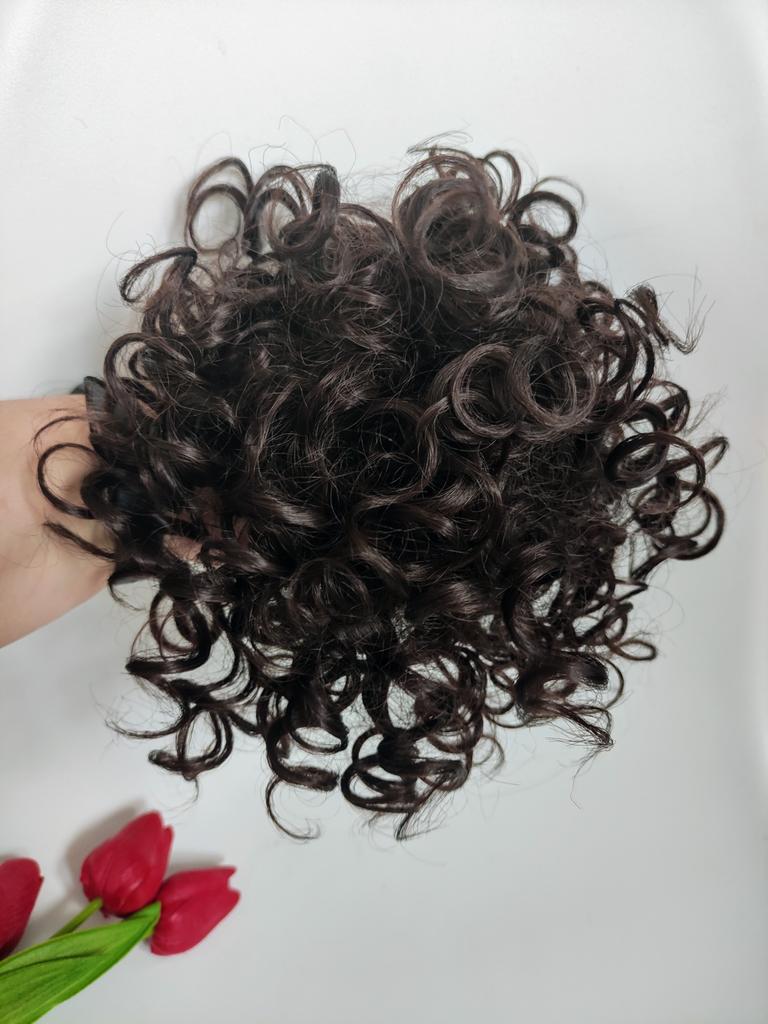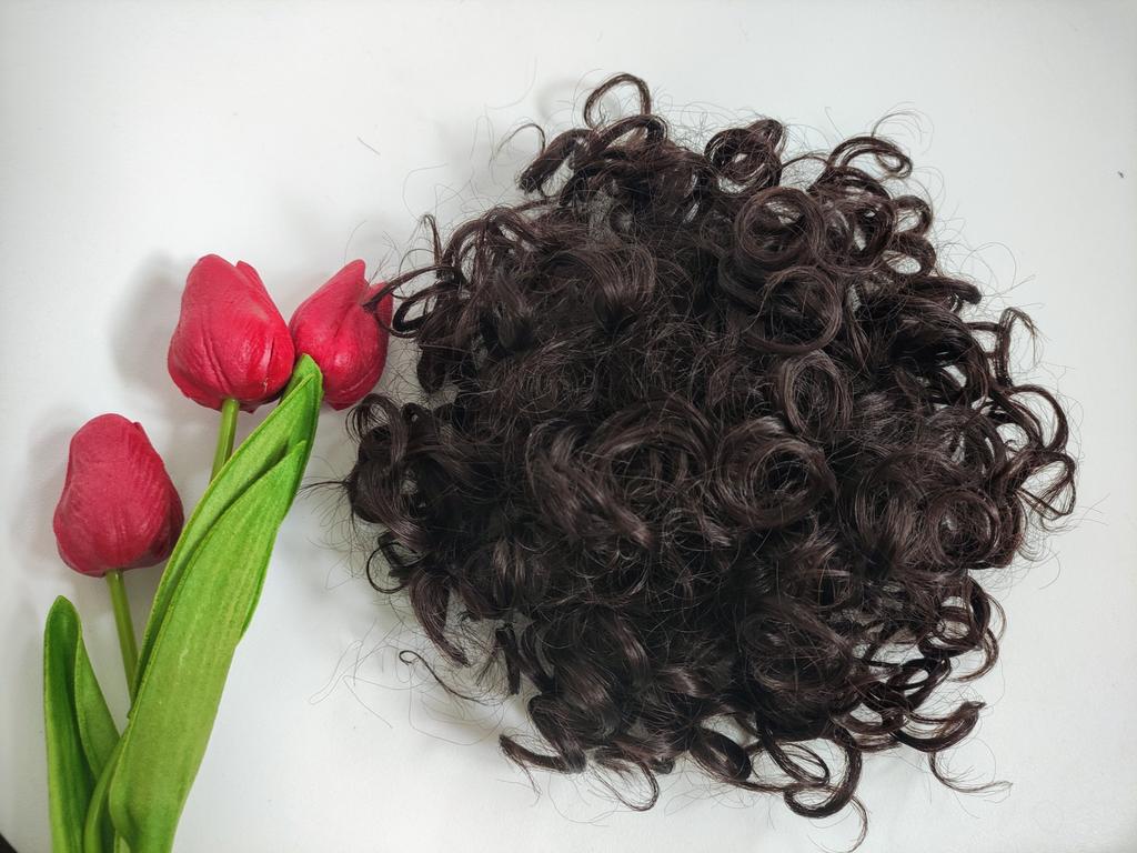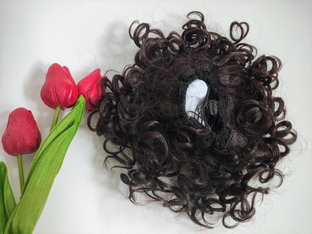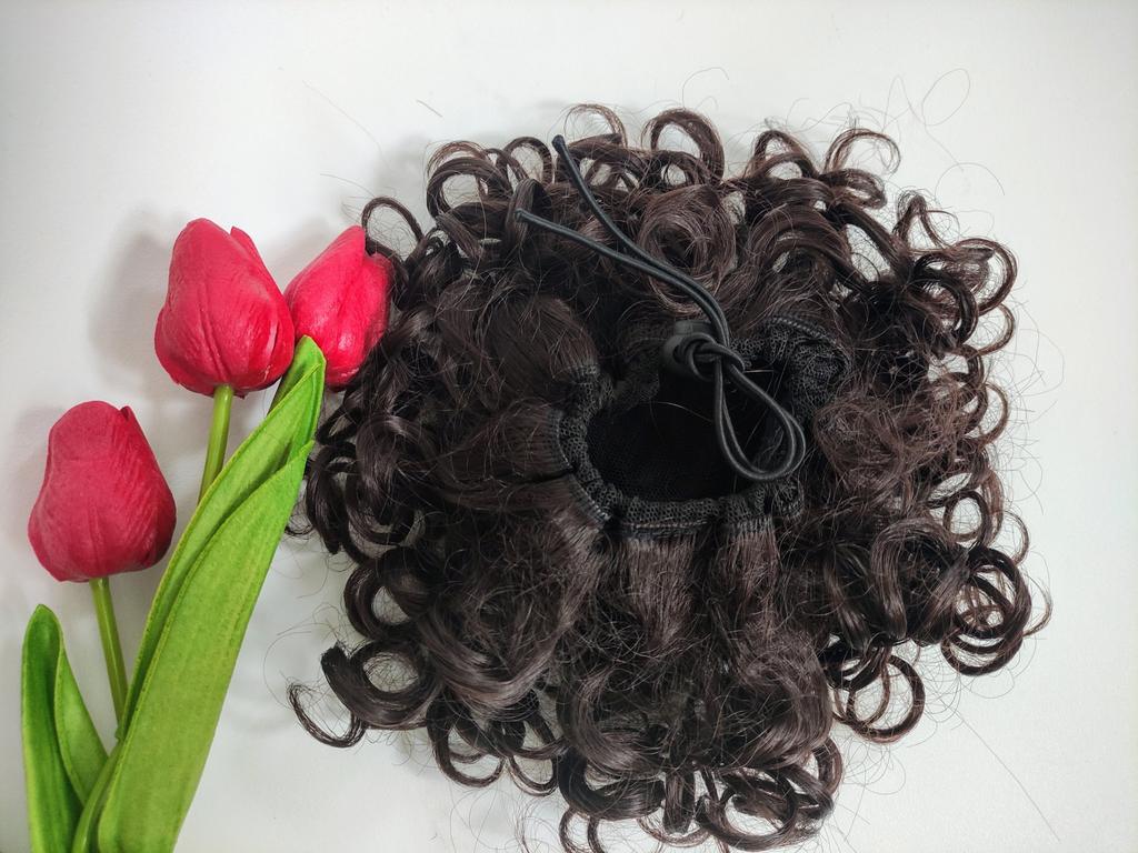 MISS WIG Synthetic Short Messy Hair Buns Hair Piece Elastic Drawstring Loose Wave Large Curly Ponytail Extension Dark For Women Daily Wear Wig