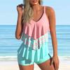 Women's Shoulder Strap Swimsuit Double Layered Lotus Leaves Print Bikini Tankini Swimsuit