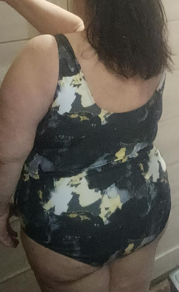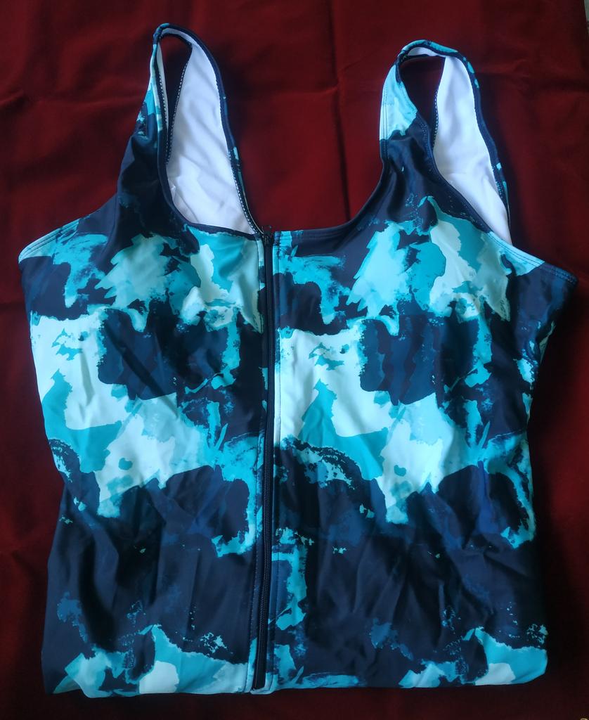 Lovely swimsuit. Lined. Insert cups. Fits size 52-54 fine. Will fit even better at 54-56