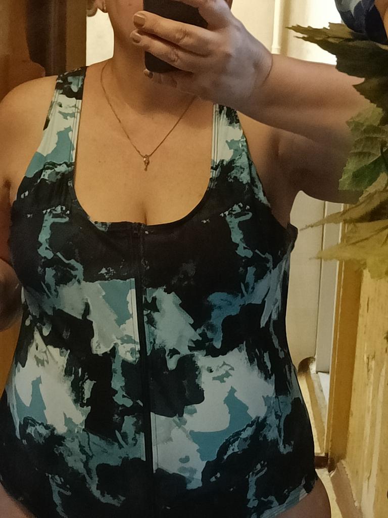 The swimsuit is excellent, comfortable, covers everything you need. Very convenient to put on, because it has a zipper. You could have taken a size smaller