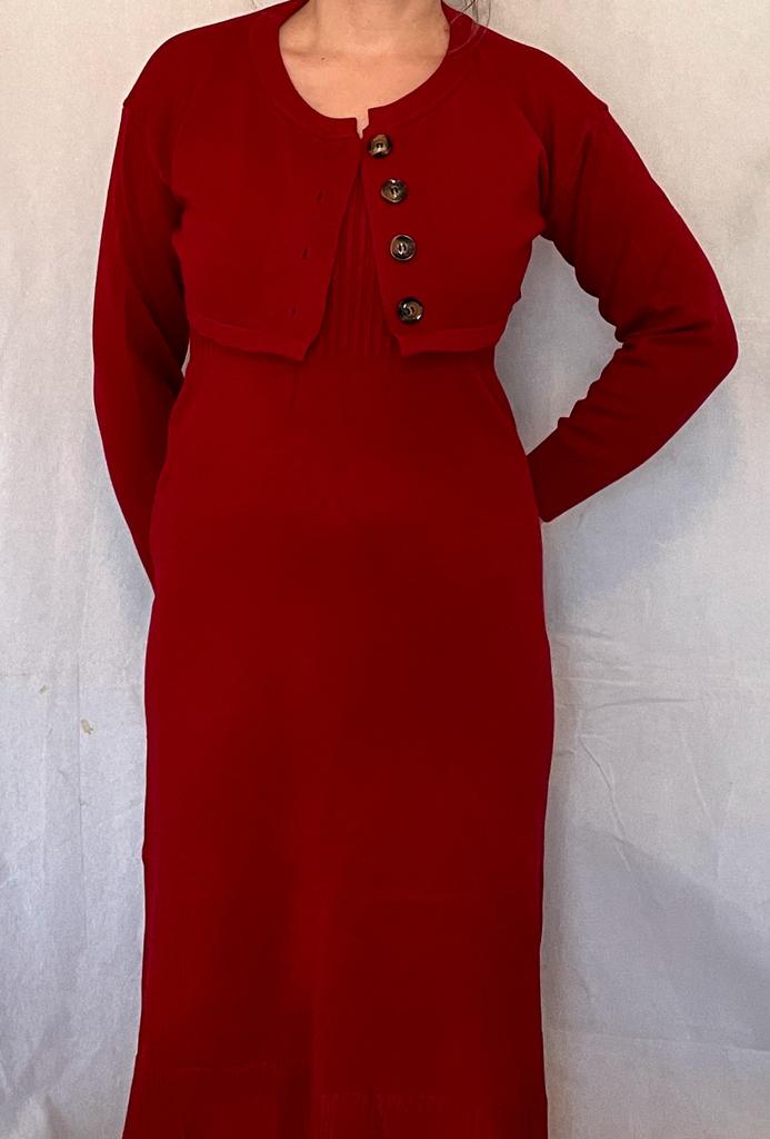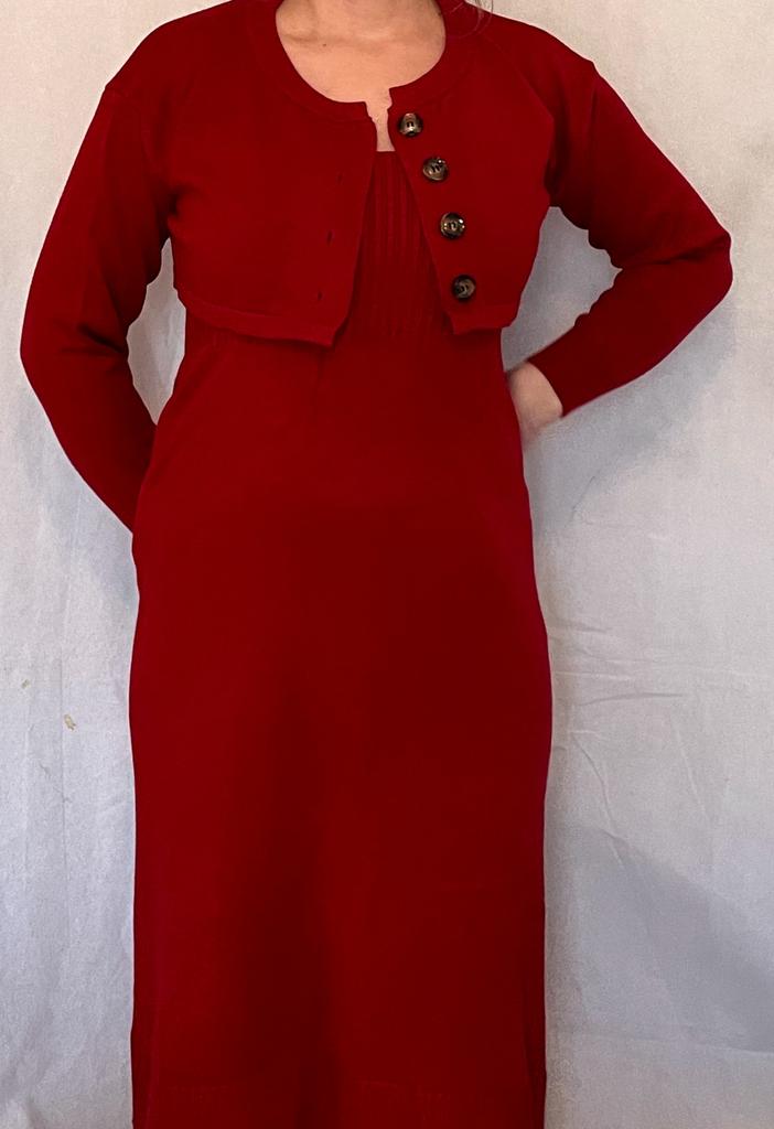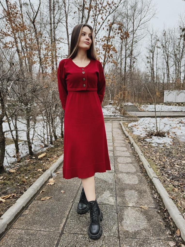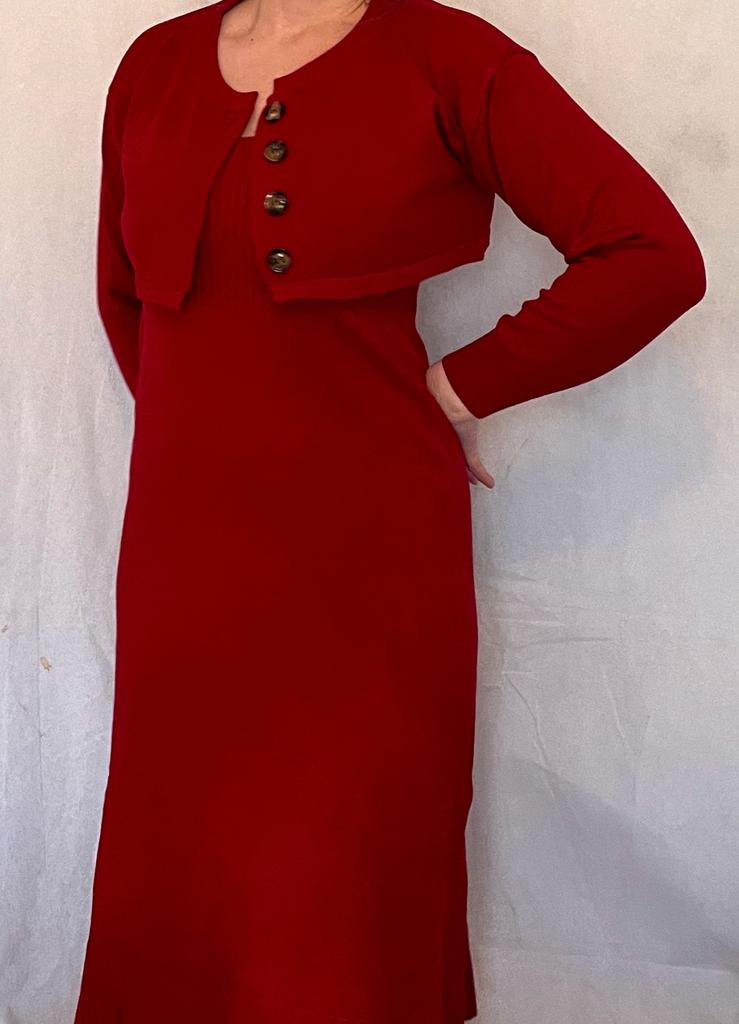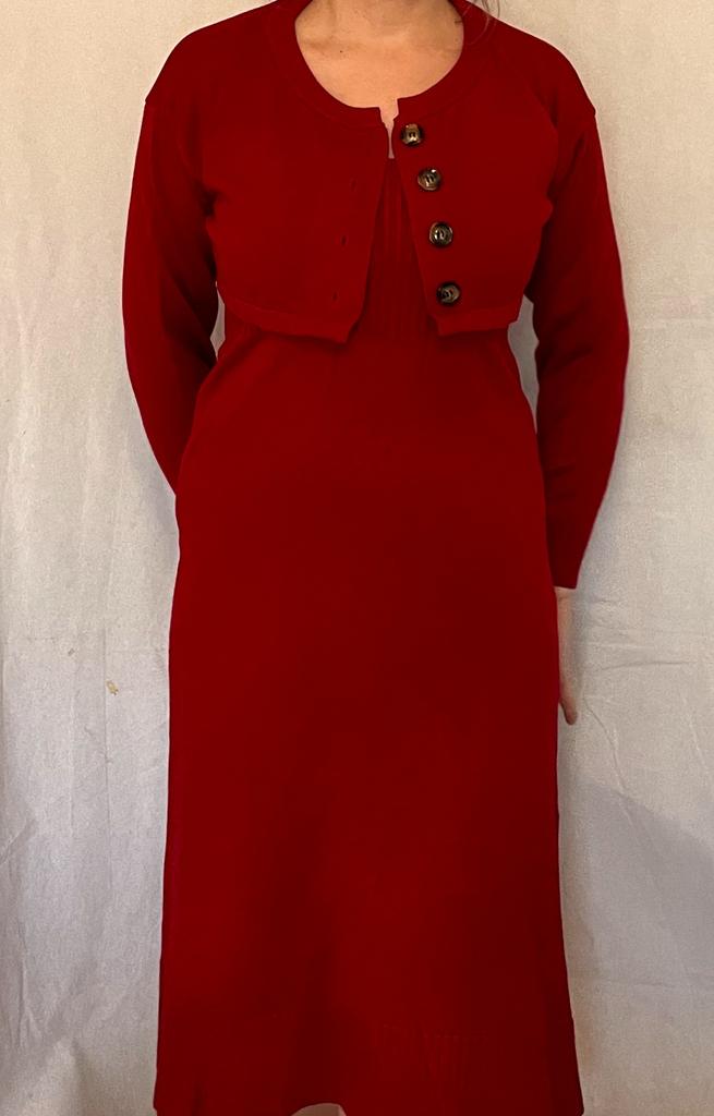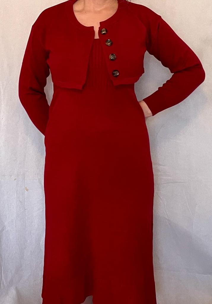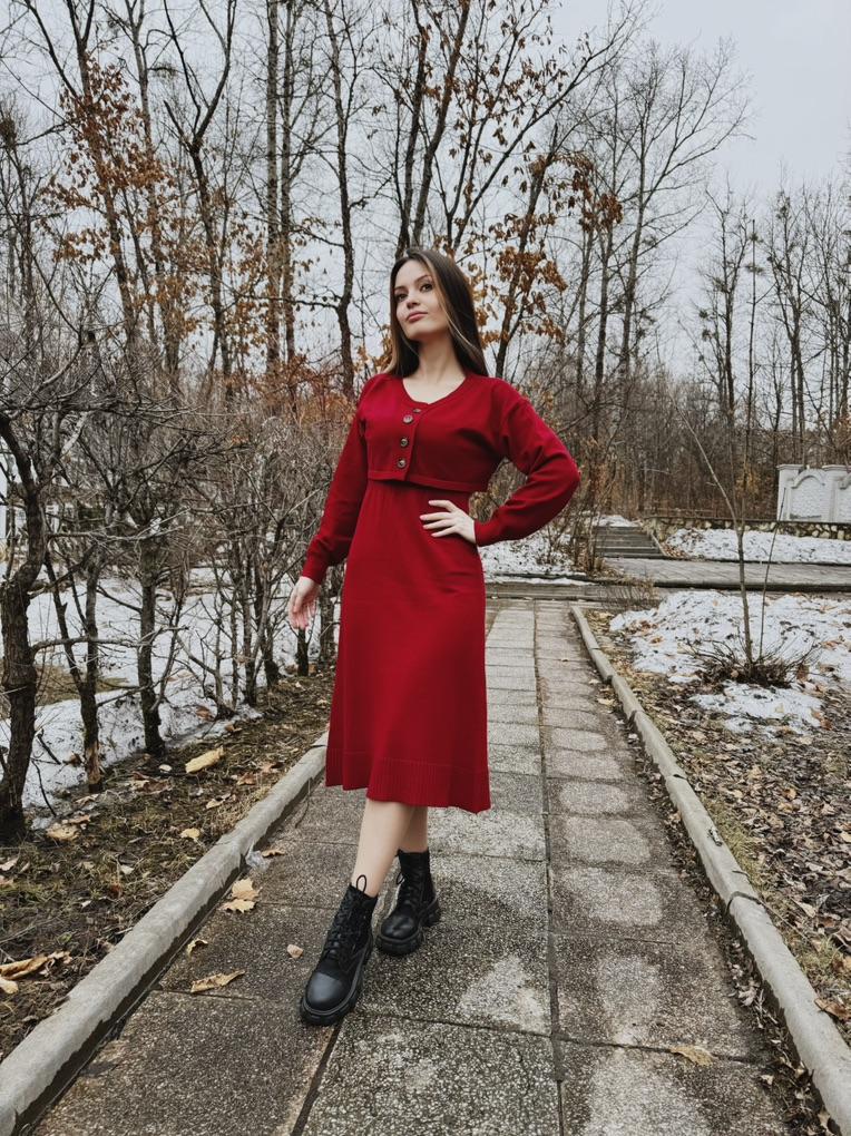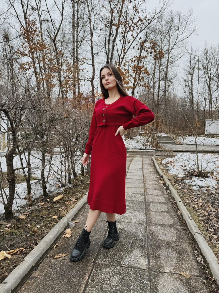 DIMANAF 2024 Autumn Two-Piece Set Sweater Red Dress Women Solid Knitting Fashion Casual Style Loose Sweater