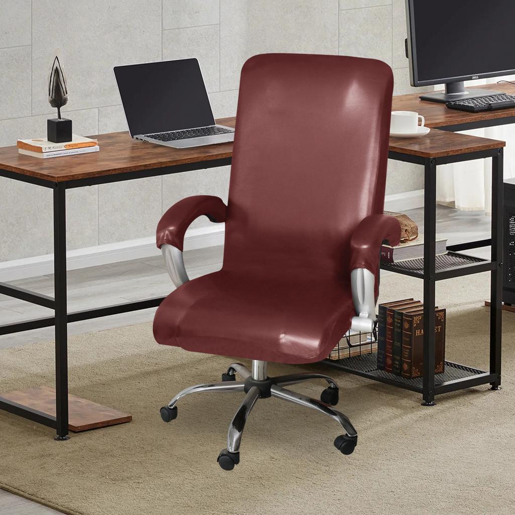 Waterproof Office Chair Cover with Armrest Covers PU Leather Computer Chair Cover Desk Chair Cover Rotating Chair Slipcover High Back Chair Seat