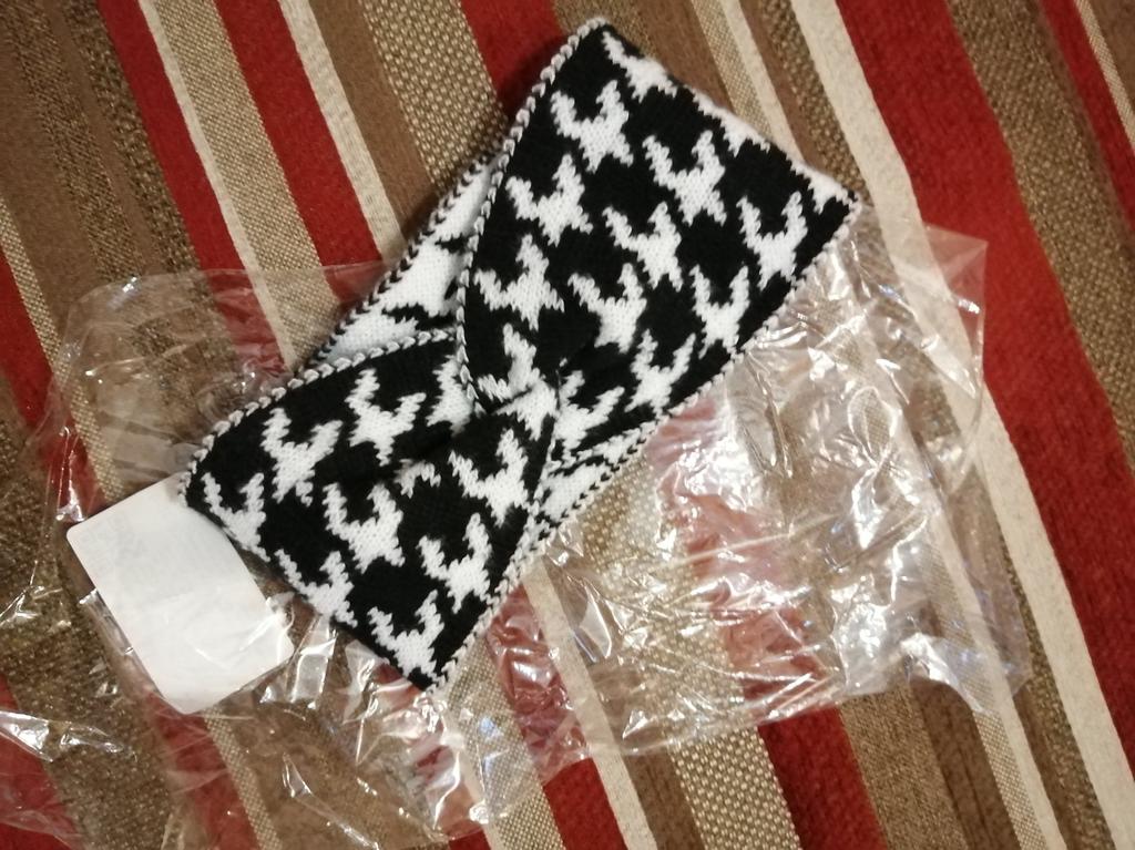 Vintage Elegant Houndstooth Knit Wide Headband Chic Tie Sports Warm Headband for Women, Cross Knot Hair Accessory