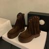 Vintage Chunky Women Western Cowgirl Boots Fashion Tassels Shoes Autumn Winter Platform Heel Ladies Short Booties