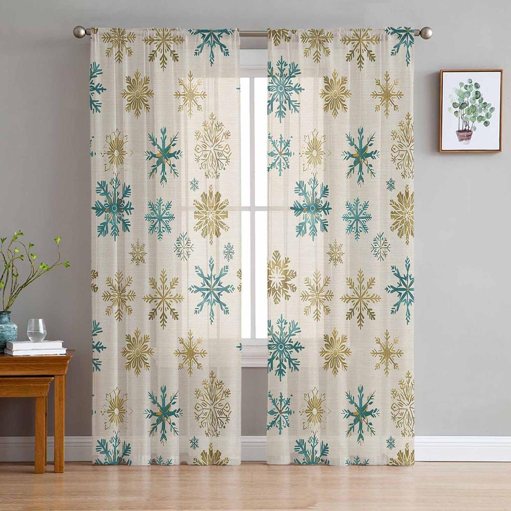Christmas Letter Snowflakes Curtains For Living Room Bedroom Home Decoration Window Voile Tulle Curtain Drapes