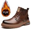 Fashion Winter Fur Warm High Quality Cowboy Boot Men's Black Business Leather Boots Lace-up Thick Sole Pointed High Top Leather Shoes