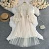 GMXIA Women's Fashion Spring Autumn Solid Color Print Half Turtleneck Long Sleeve High Waist Casual Dresses