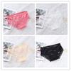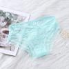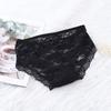 Girls' Sexy Lace Briefs Breathable Underwear with Butterfly Knot Carved Mid Air Waist Knickers Solid Color Women's Triangle Panties