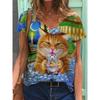 Ladies' Casual Summer Pullover V-neck T-shirt with Floral 3D Printing Short Sleeved Loose Women's Top T-Shirts Women’s
