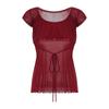 Women 's Lace Flower Crochet Tops, Cap Sleeve Low Cut Drawstring T-shirt Female Off Shoulder Clothing
