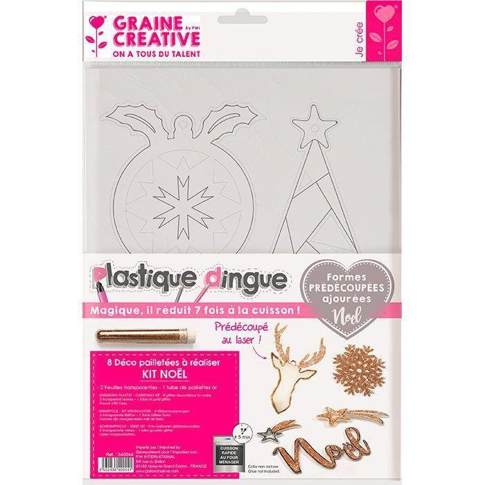 Kit de loisirs créatifs - Plastique dingue - Décorations de Noël - 8 formes pailletées - Transparent - Doré