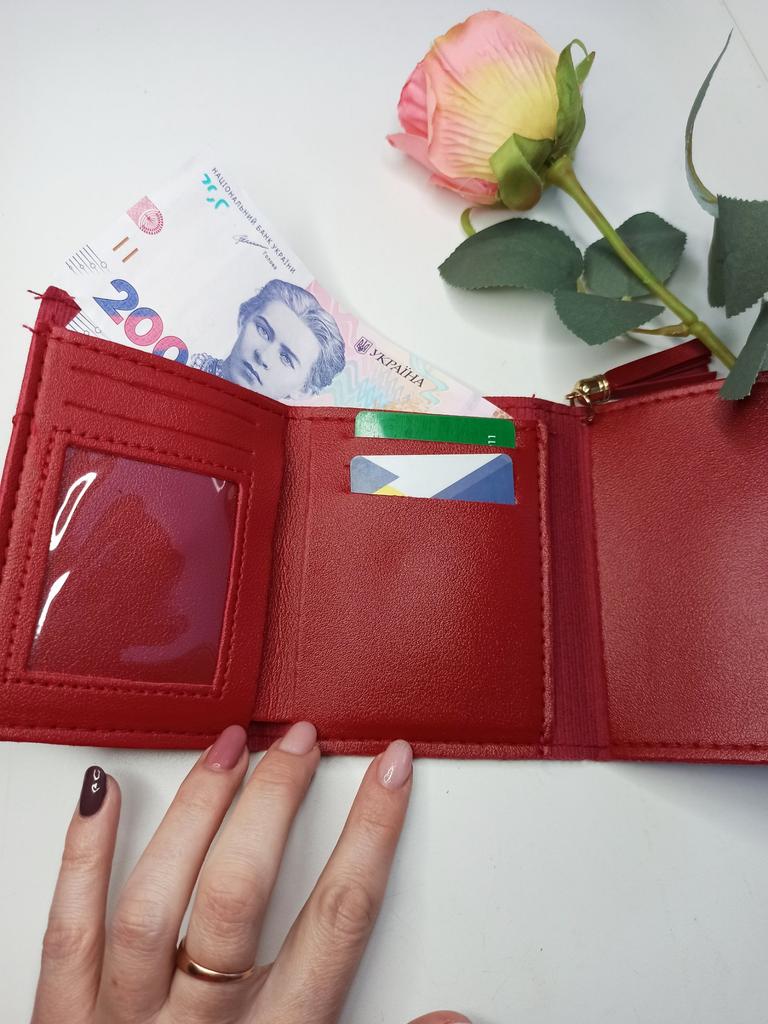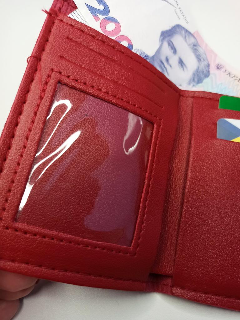 It is equipped with a well - organized interior structure. There is a main compartment for storing bills, a clear plastic window for a photo or ID, six card slots for holding credit cards, transportation cards, etc., and a separate compartment for coins or small items. The wallet closes securely with a magnetic snap - button, ensuring the contents are safely stored and easily accessible.