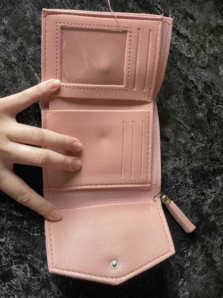 This fashionable mini wallet is highly versatile in terms of matching. Its light pink color and elegant design make it suitable for both casual and semi - formal outfits. It can complement a variety of looks, whether you're wearing jeans and a blouse for a casual day out or a dress for a more refined occasion. It's perfect for daily activities such as shopping, commuting, or going out for coffee, as it allows you to carry your essential cards and cash in a stylish manner.