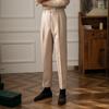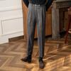 These Men's High Waist Woolen Suit Pants are designed to provide warmth and style during the autumn and winter seasons. Crafted from high-quality wool, these pants feature a straight-leg silhouette and a solid color, offering a versatile look that can be easily paired with a variety of outfits. The high waist design enhances both comfort and fit, making them a must-have addition to any wardrobe for cooler weather.