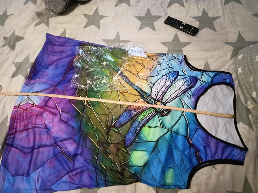 Women's Rose Flower Fake Two-piece Flying Dragonflies Printed Sleeveless Round Neck Dress Loose Soft and Comfortable Plus Size Dress