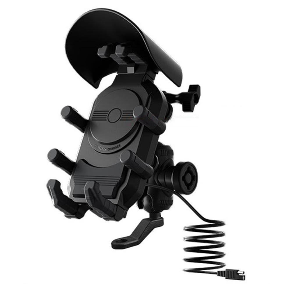 WUPP CS-2056A1 Motorcycle Phone Holder with USB-A+Type-C+Wireless 3-in-1 Charging,Mirror Mount