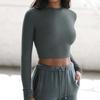 Women's Sports Long Sleeve Round Neck Sexy Waistband Casual Fitness Short Slim Top