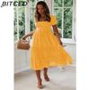 BITCED Summer Love Polka Dot Dress Women Casual A-Line Short Sleeve Square Collar Ruffle Midi Dress Chiffon Red Black Blue Green